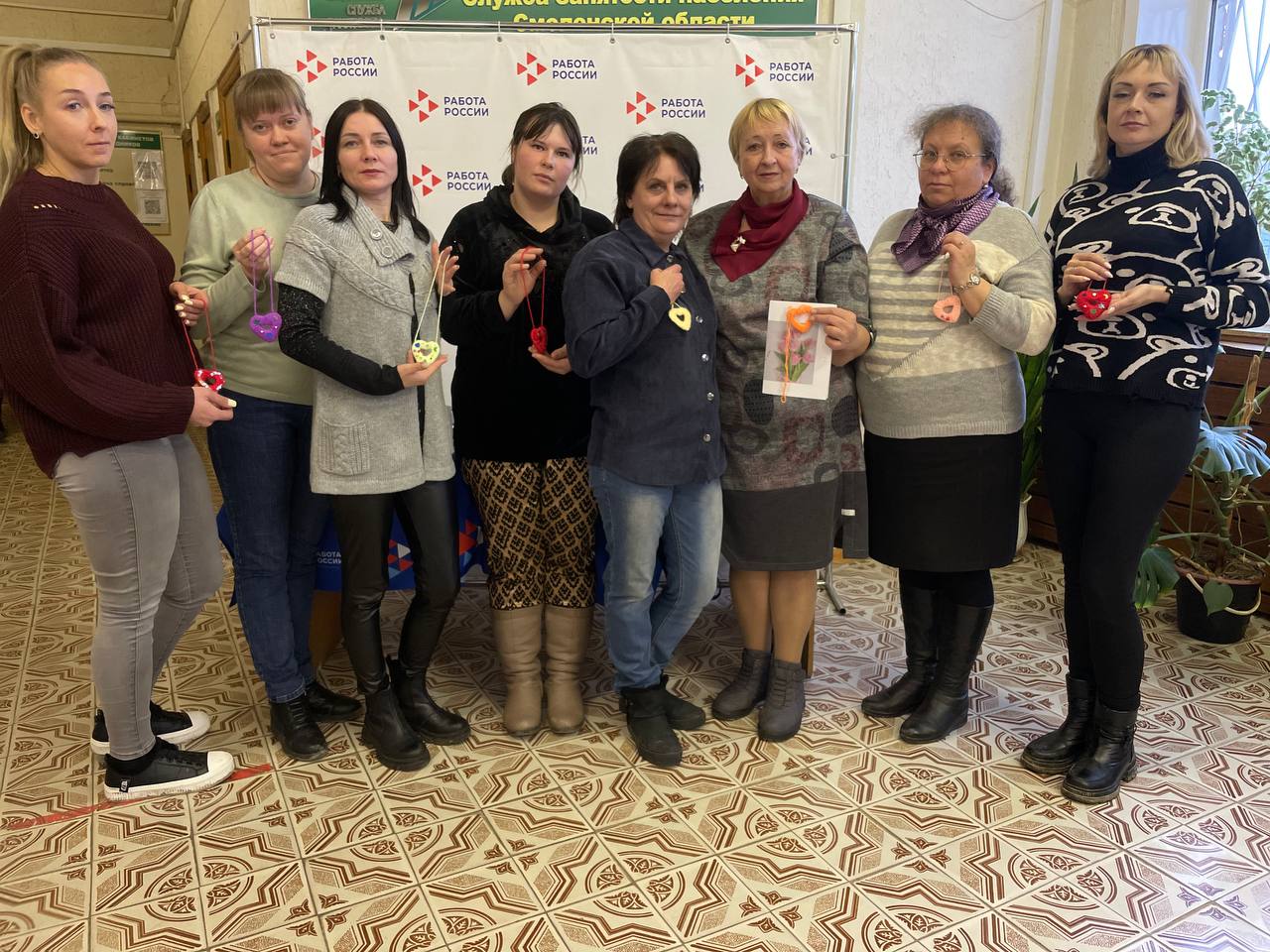 В Центре занятости населения Починковского района в рамках женского клуба «Найти себя» прошел мастер-класс, приуроченный ко дню матери, по изготовлению сувенира "Сердечки для любимых мам: рукотворная нежность." Его провела волонтёр муниципального штаба Ковалева Тамара Дмитриевна.