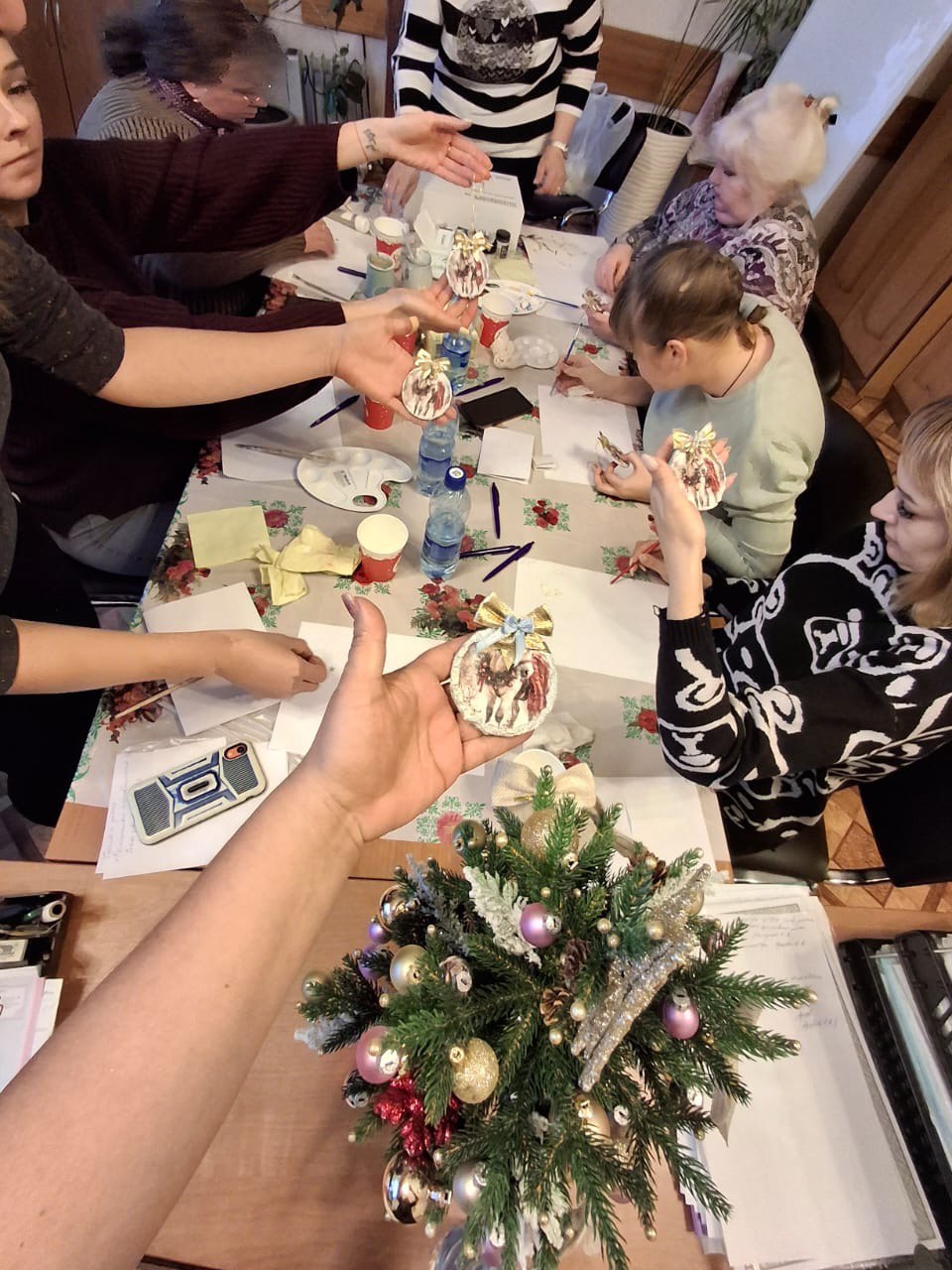 После тренинга участницы с энтузиазмом приступили к мастер-классу по изготовлению новогодних игрушек. В преддверии праздников это стало не только увлекательным занятием, но и прекрасной возможностью зарядиться позитивной энергией и воплотить свои мечты в реальность. Каждая игрушка, созданная своими руками, несла в себе частичку тепла, надежды и веры в лучшее.